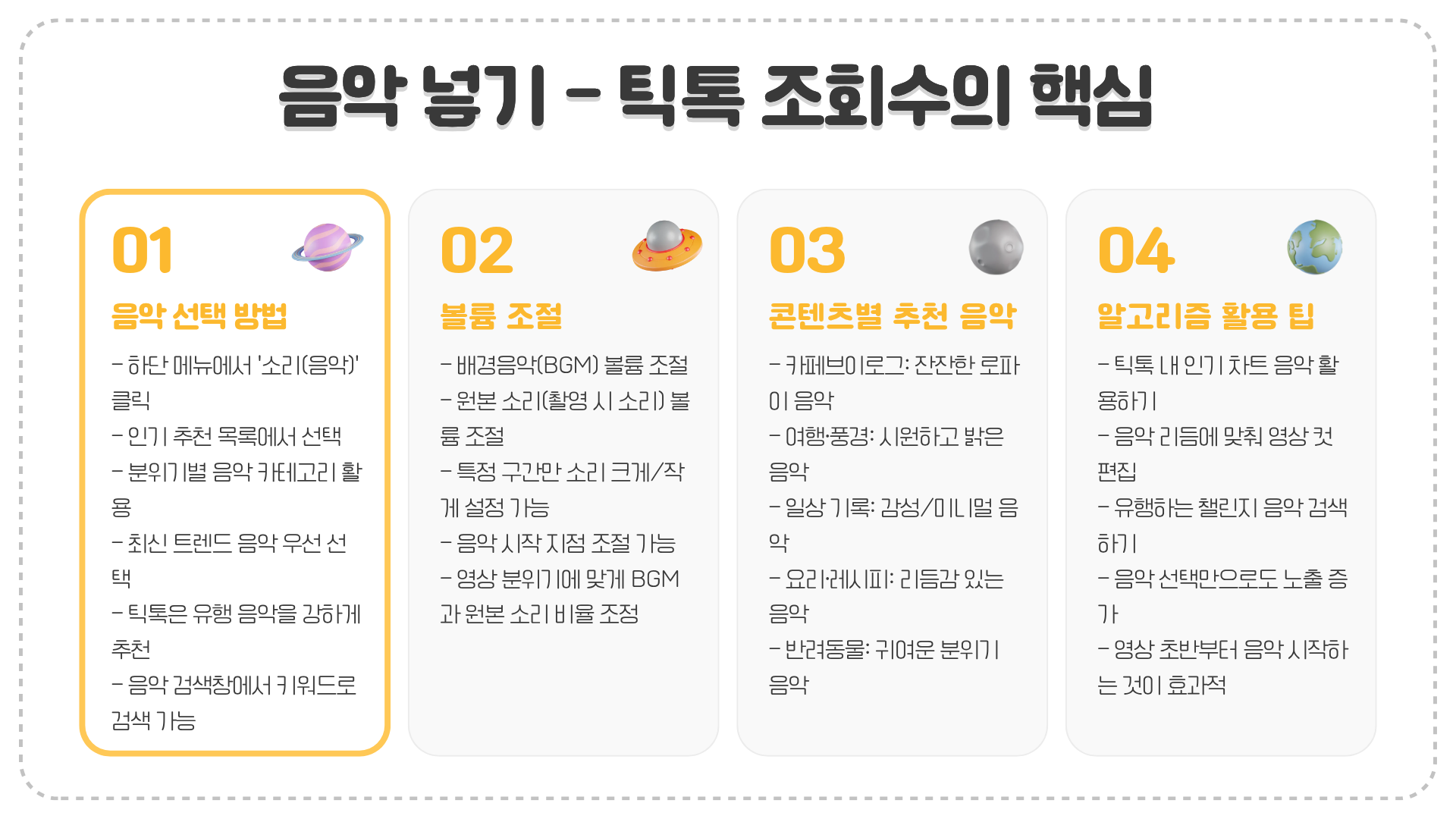 요약: ‘음악 선택만 잘해도 절반 성공’. 트렌드 음악을 활용하세요.
